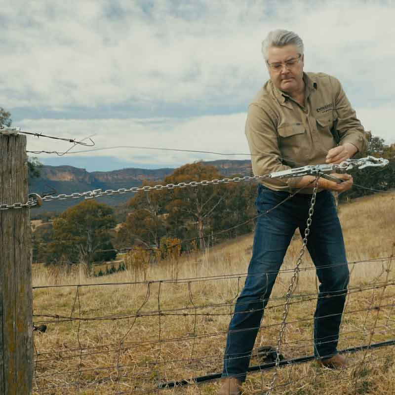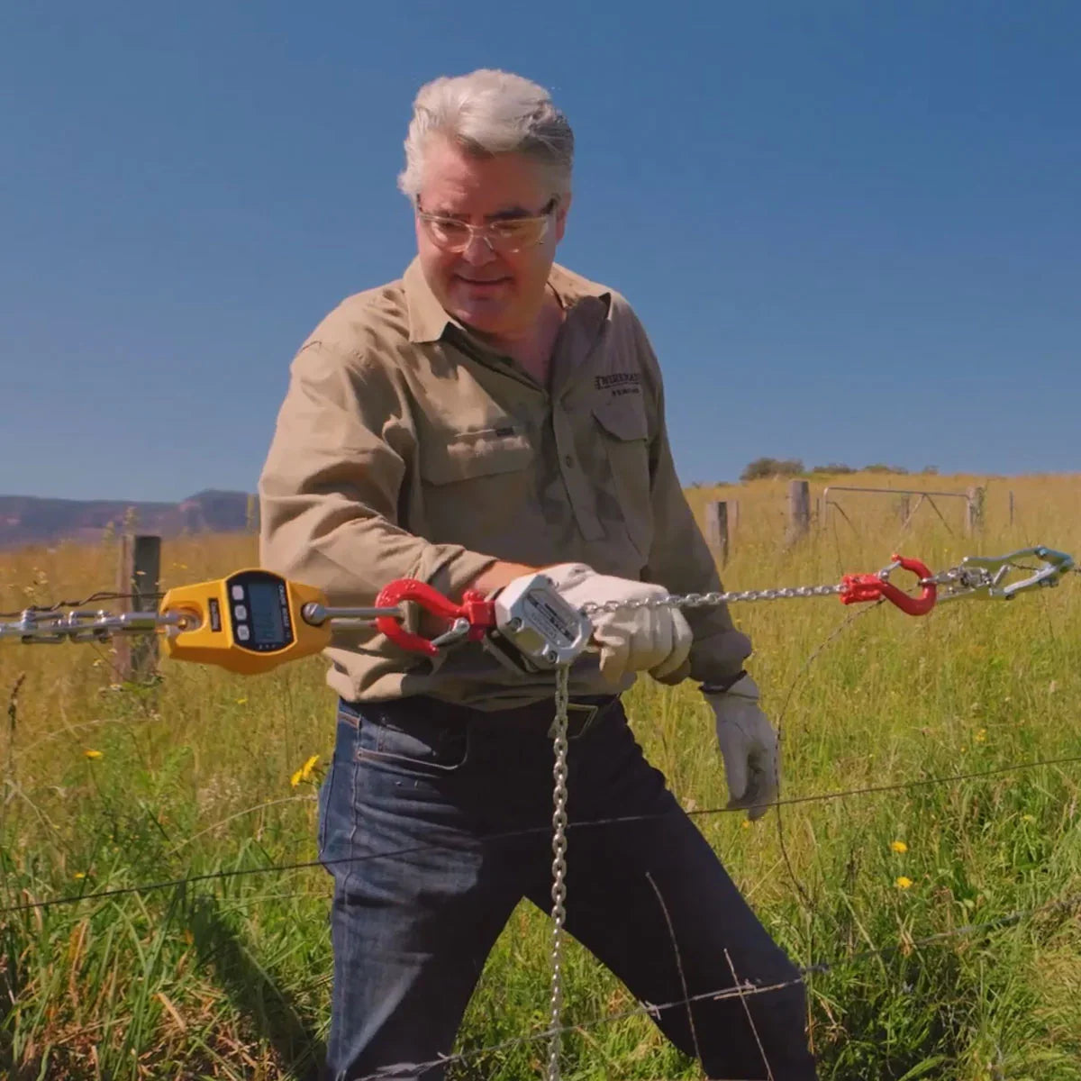 Chain walking wire stretchers that make the job of wire tensioning easier,...